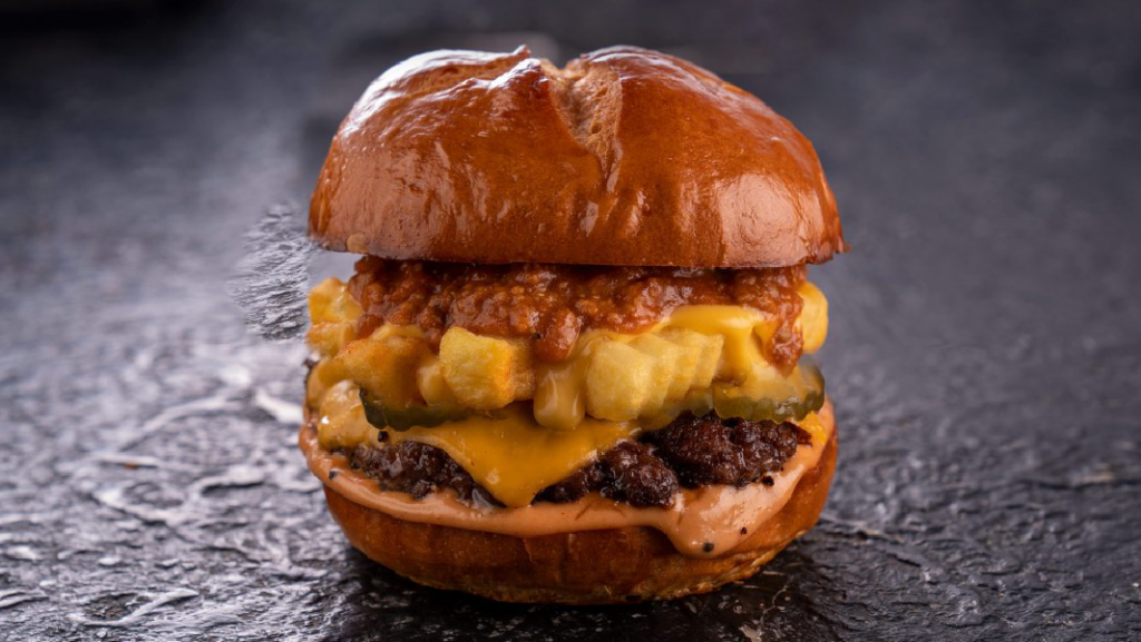 Brioche bread – My sauce – pickles – wagyu beef – American cheese – Sloppy Joe sauce – French fries with cheese – served with Lishlazz’s sides.