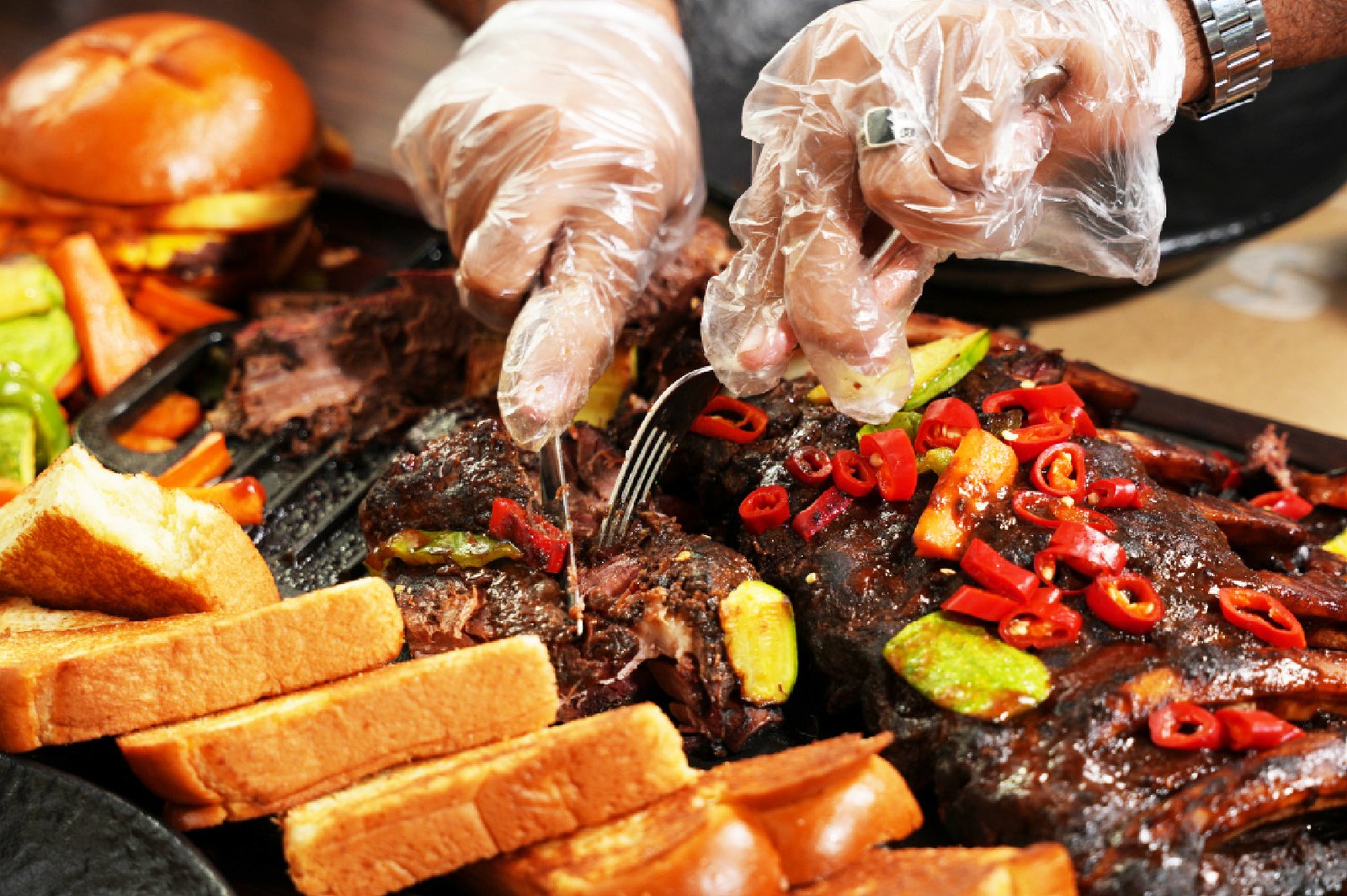 250 جرام بريسكت – كيلو باك ريبز – 500 جرام شورت ريبز – صحنين من كرات اللحم مع صوص الكرز – بي جو برجر مع صوص سلوبي جو – تشكيلة من الصوصات والخضار المشوية – صحن سلطة كينوا – صحن بطاطس